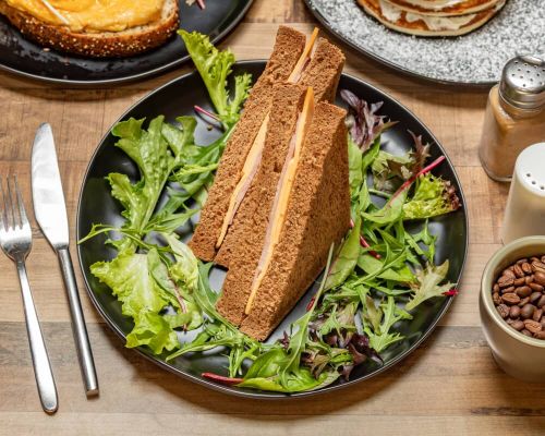 Thinly sliced ham paired with melted cheese on toasted bread.