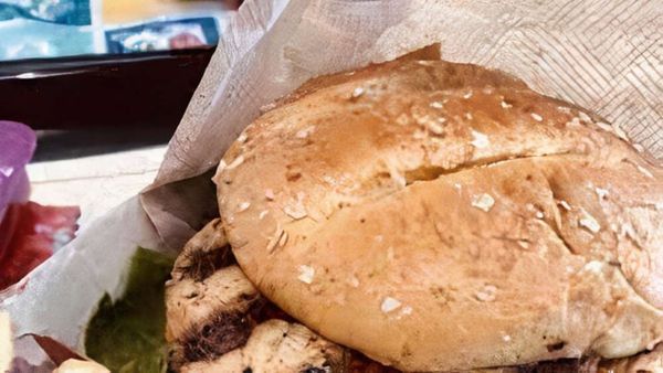 Steak, lettuce, tomato, caramelised onions, cheese, BBQ sauce, with chips and drink